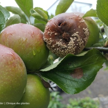 Les symptômes peuvent apparaître sur différents organes, ils proviennent de blessures diverses (insectes, oiseaux, ...):