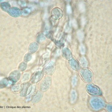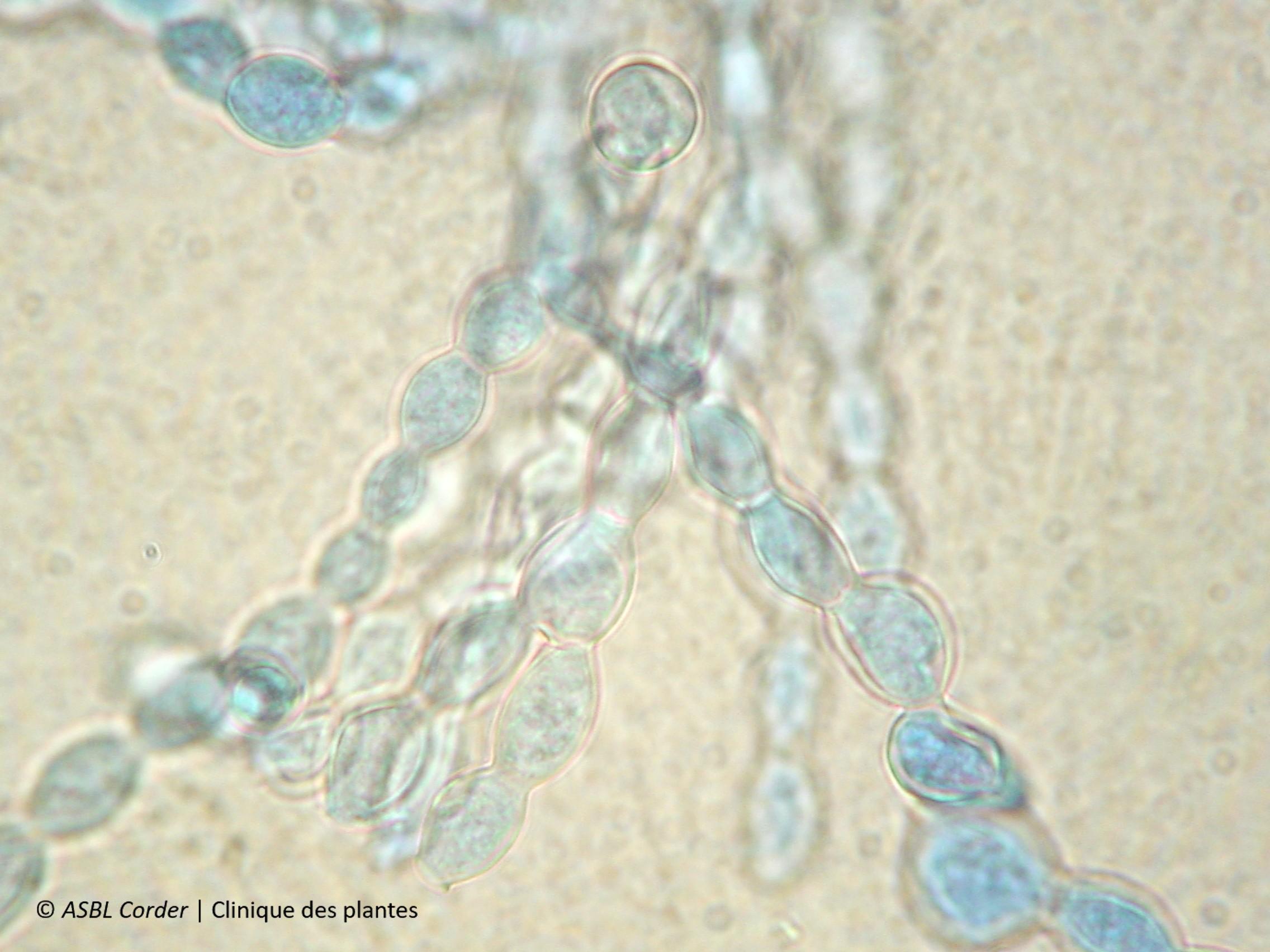- L’année suivante, des conidiophores (producteurs de spores) bruns ou gris peuvent apparaître si l’hygrométrie est favorable.