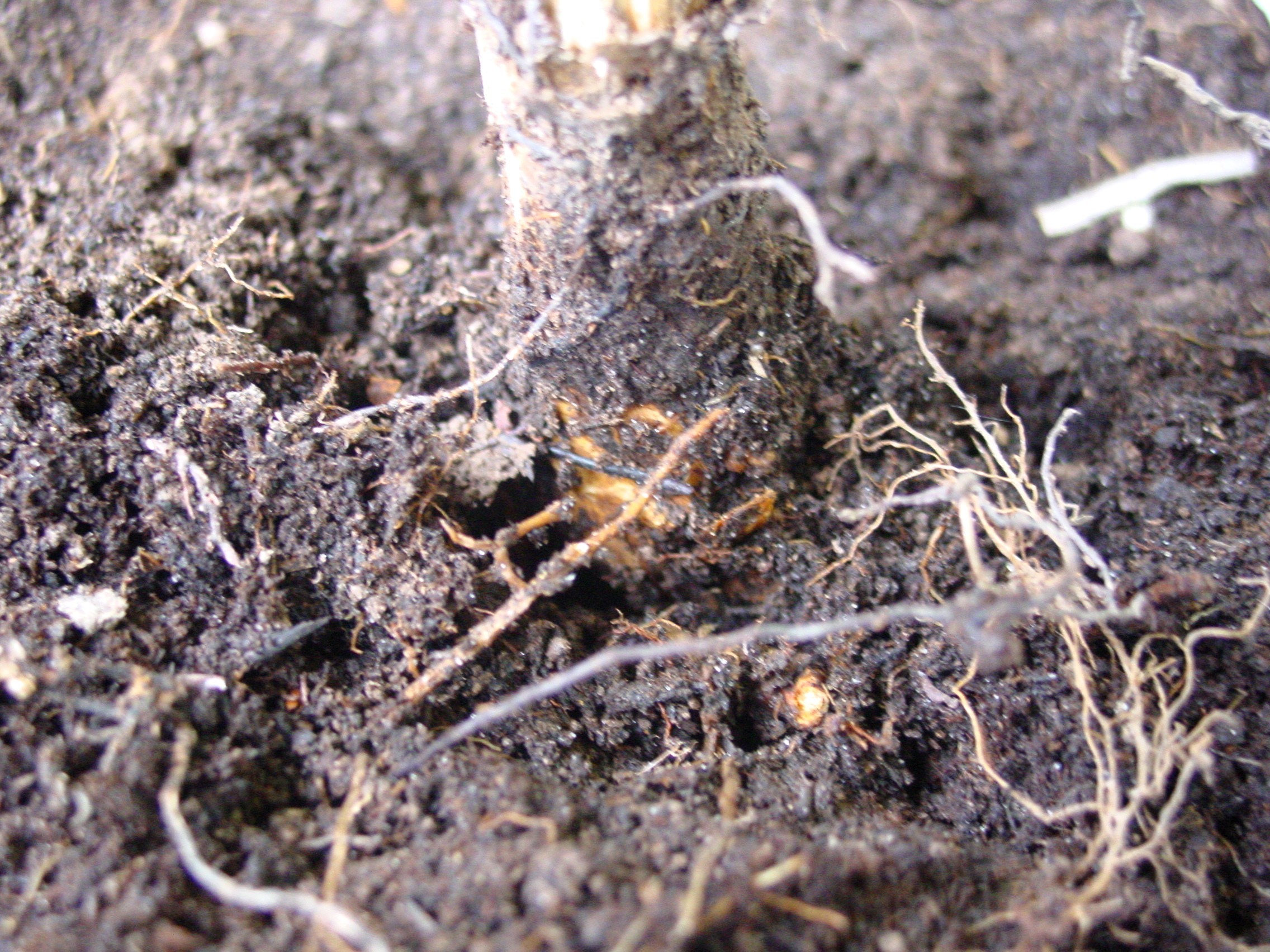 - apparition de mycélium blanc fragile à l’extérieur de la racine.