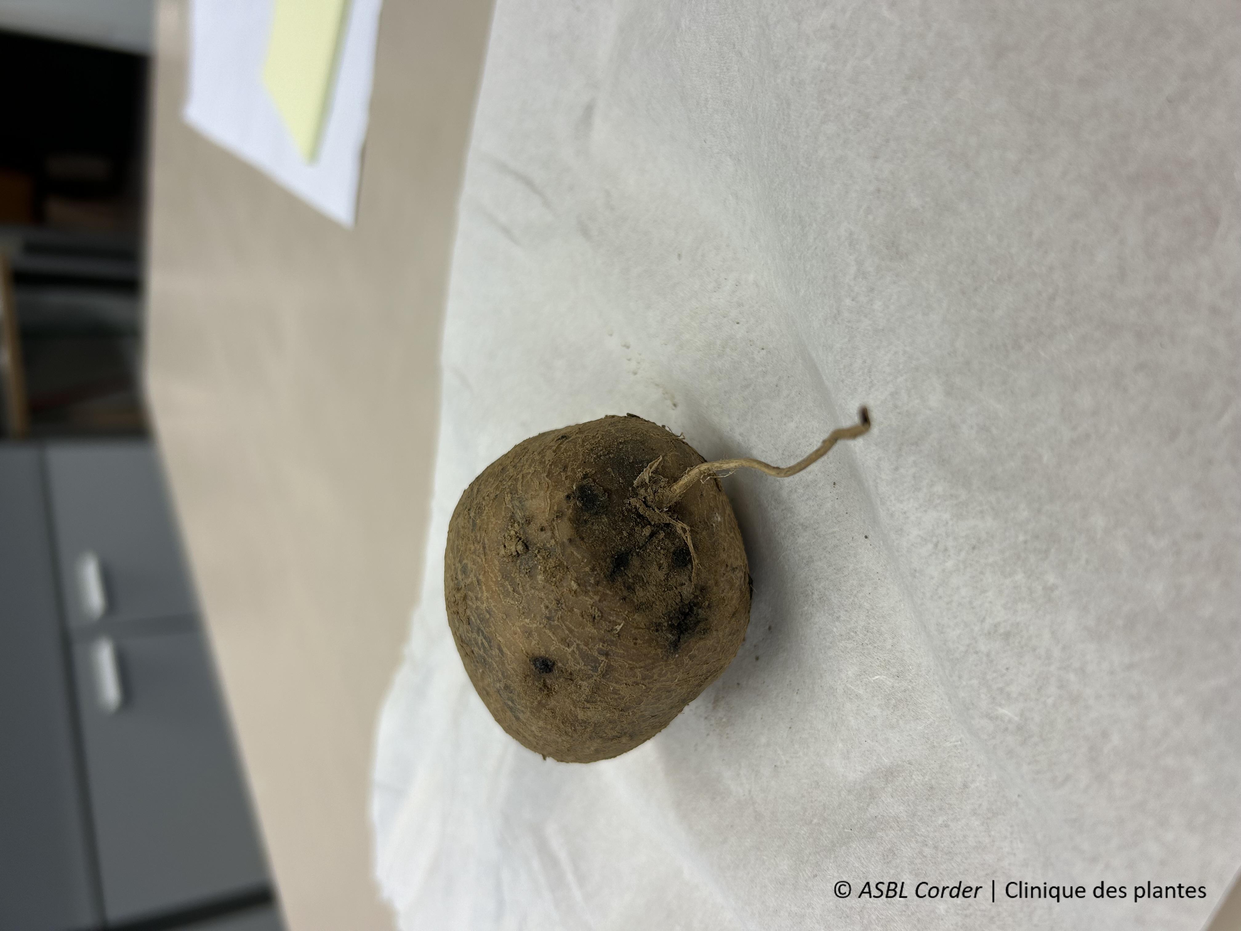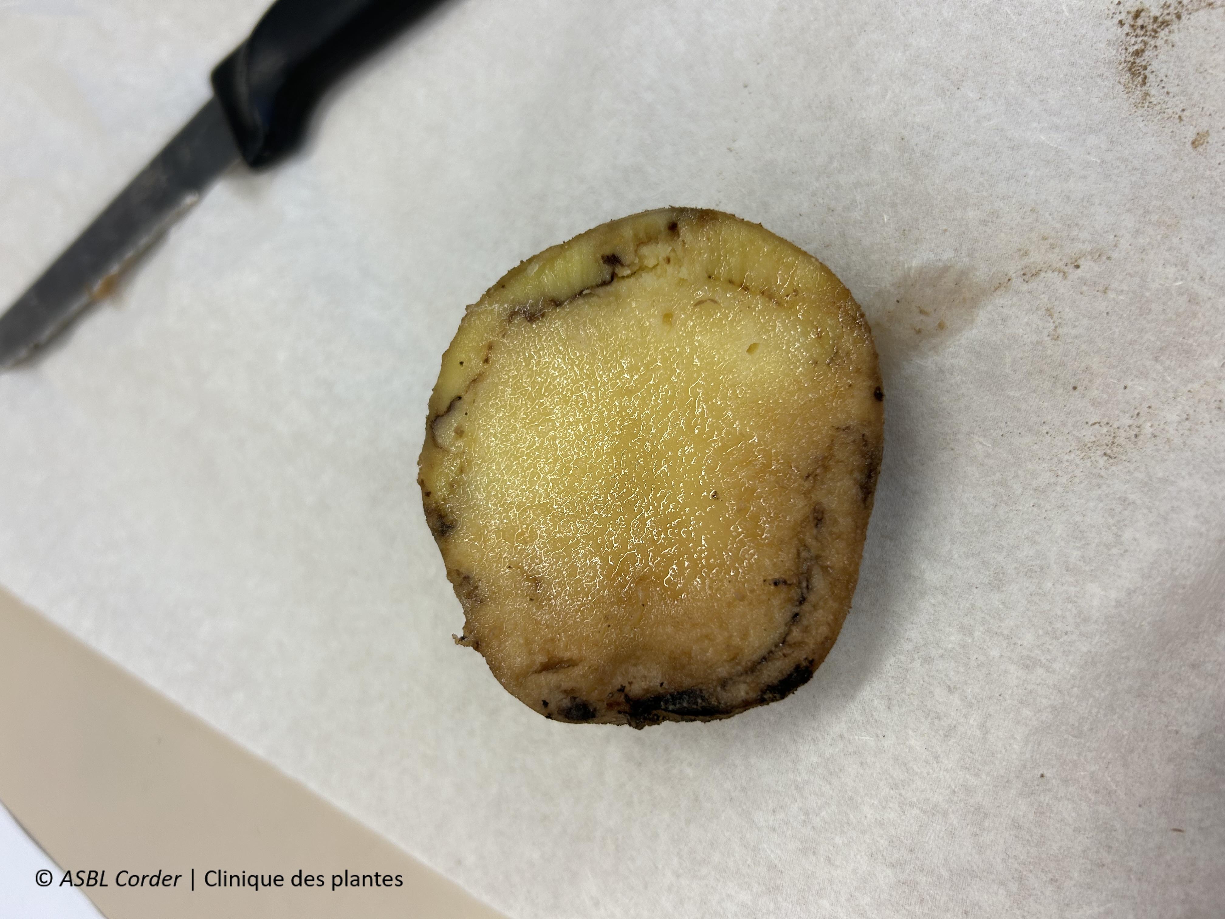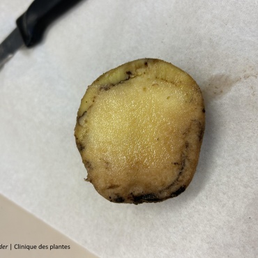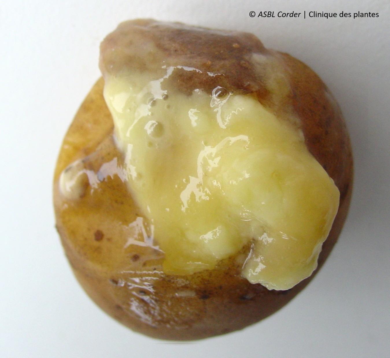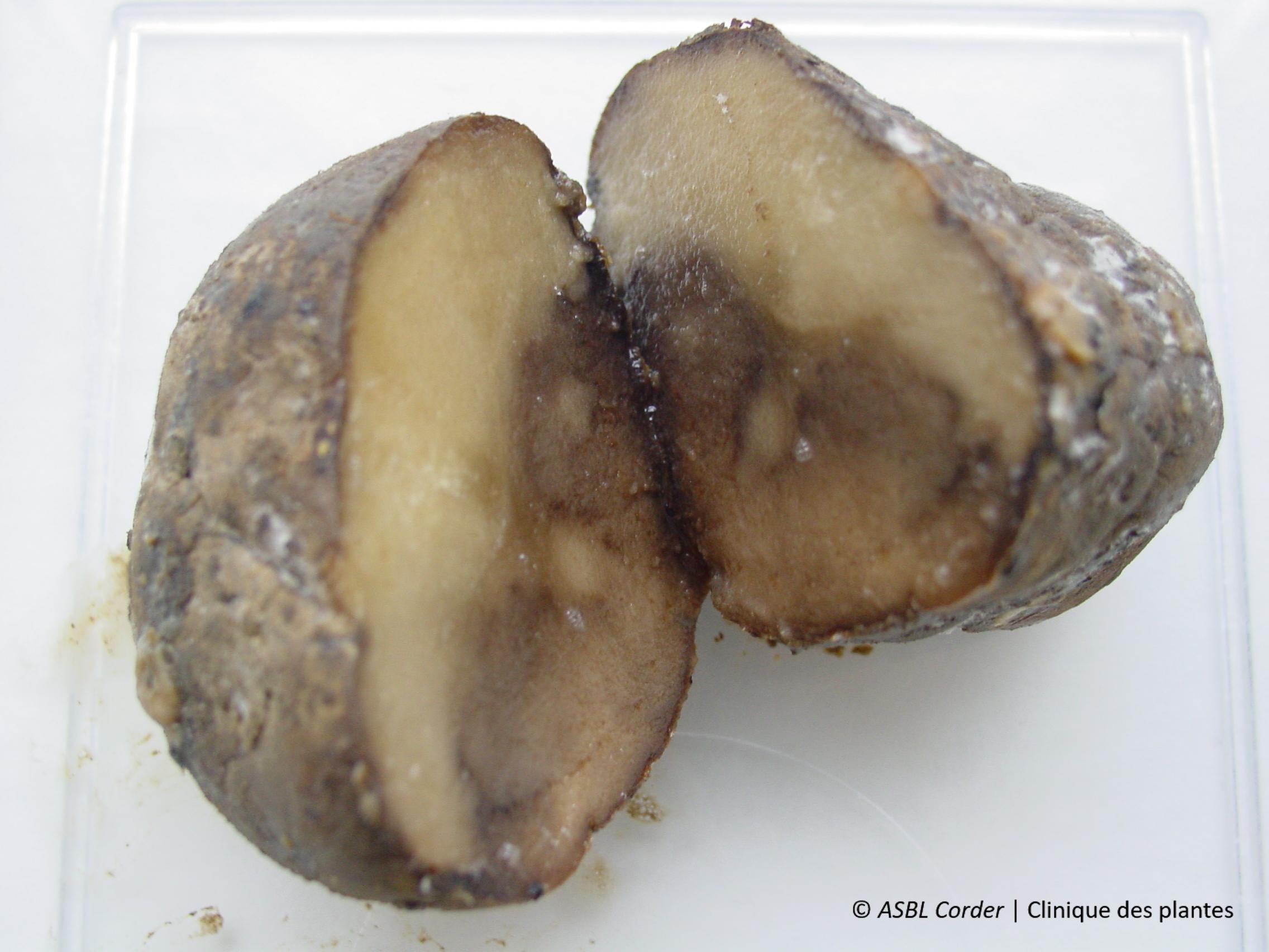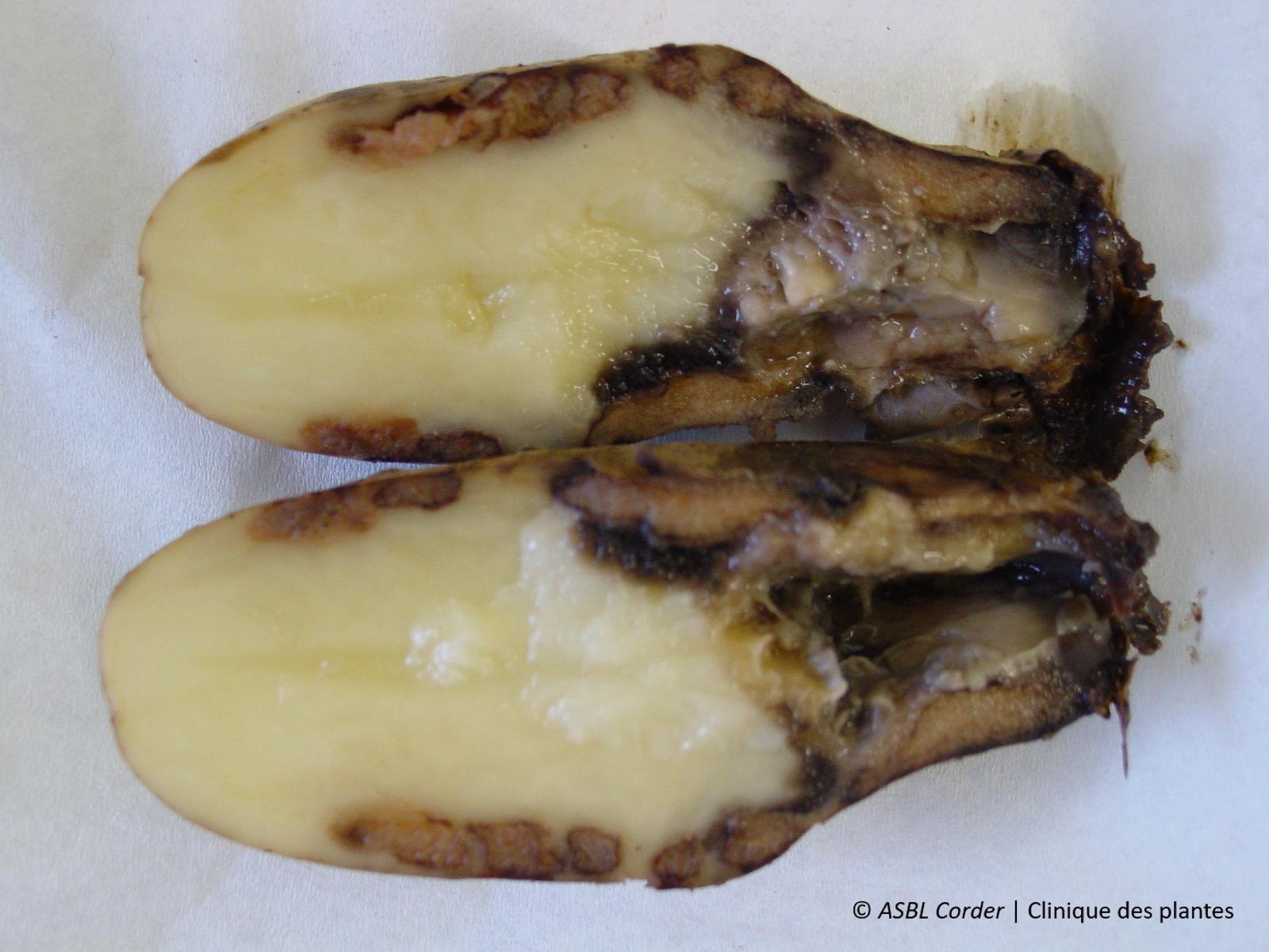 - Pourritures molles internes démarrant du stolon ou d’une blessure.