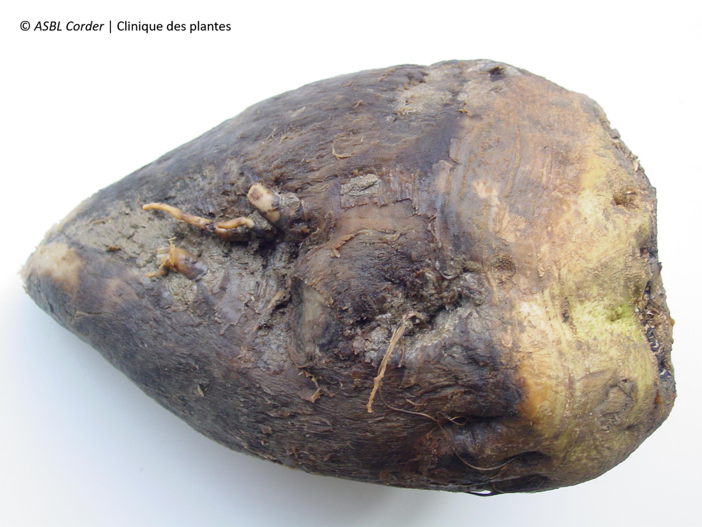 - Une betterave infectée ne transmet pas la maladie à une betterave saine, mais une betterave faiblement touchée, présentant peu de symptômes, va pourrir entièrement lors du stockage. Ecarter les betteraves touchées qui finiront pas pourrir.