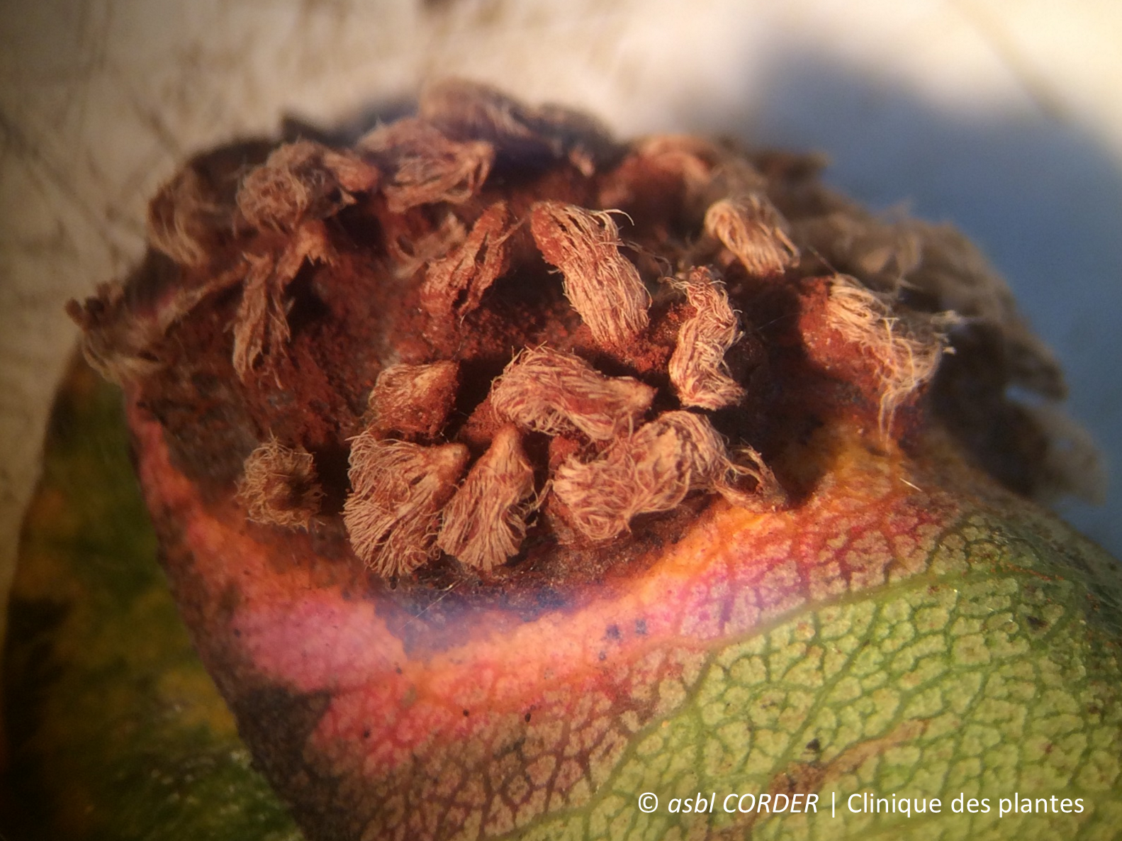 - Plantes hôtes : Pour son développement et sa survie, ce champignon a besoin d’un hôte primaire et d’un hôte secondaire, le génévrier et le poirier.