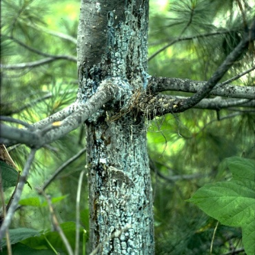 - Présence de boursouflures, d’un renflement fusiformes de l’écorce et un écoulement de résine (attirant la pyrale du tronc).
